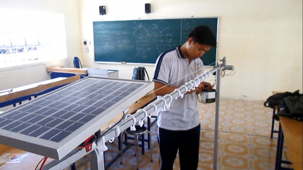 Các dụng cụ mà Tấn Thành sử dụng để làm thiết bị này gồm có thanh sắt, động cơ giảm tốc, pin năng lượng mặt trời, bộ điều khiển pin mặt trời, module cảm biến nước, bình acquy, công tắc hành trình, móc rèm cửa,… Sau gần 2 tháng nghiên cứu, Thành đã chế tạo thành công thiết bị hữu ích này.