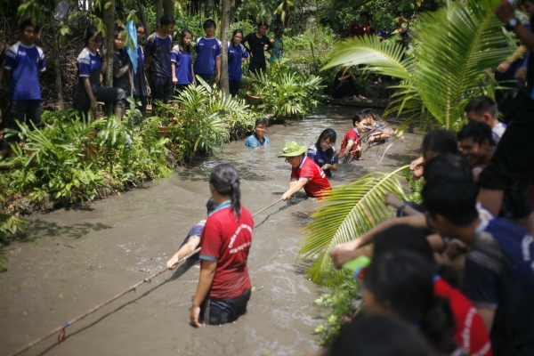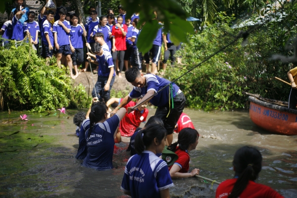 Đó chính là hoạt động Một ngày làm nông dân được tổ chức tại nông trại Tam Nông (phường Thạnh Xuân, Quận 12). Ngày trải nghiệm của các bạn trở nên đáng nhớ hơn bởi các trò chơi team building, sinh hoạt tập thể hết sức hấp dẫn được đưa ra từ ban tổ chức như kéo co dưới nước, đi qua cầu dây...
