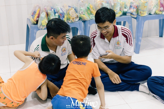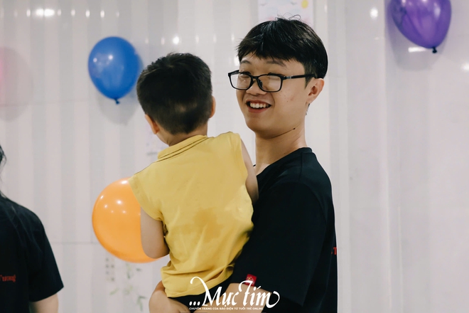 Trong lúc ấy, các em nhỏ ríu rít chạy quanh, háo hức chơi cùng các anh chị. Có em thích thú với quả bong bóng, có em được cõng trên lưng hay ôm bế, có em mê mẩn đồ chơi mới.