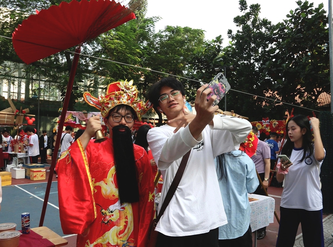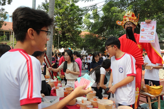 Ngoài ra, các gian hàng ẩm thực và trò chơi truyền thống như ném vòng, tạt lon cũng không kém phần nhộn nhịp, thu hút nhiều học sinh tham quan và khám phá.