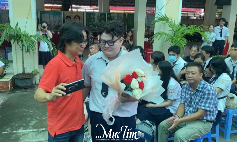 Ngay khoảnh khắc đó, cả hai cha con đều bật khóc. Quốc chia sẻ: "Có những lúc mình mắc lỗi, chưa đủ cố gắng, nhưng ba luôn đứng sau dạy dỗ, chăm sóc. Hôm nay, với bó hoa này, mình xin dành lời cảm ơn sâu sắc nhất gửi đến ba vì đã luôn yêu thương, dành những điều tốt nhất cho mình".