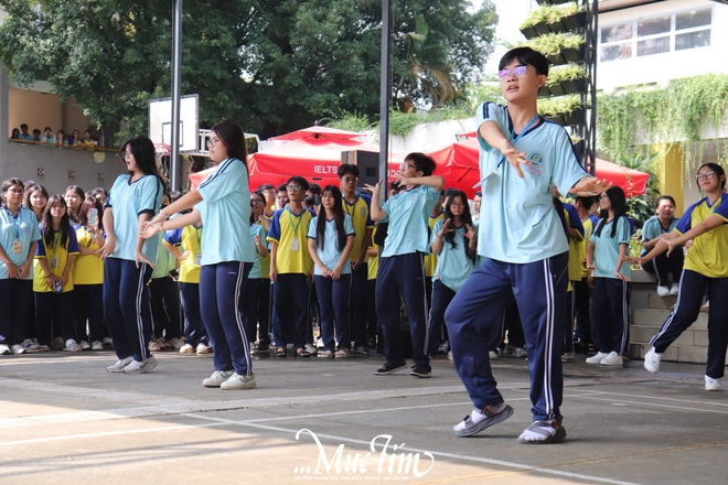 Khi tiếng nhạc vang lên, các bạn học sinh nhanh chóng xuống sân trường để theo dõi, cổ vũ và tham gia vào hoạt động này.