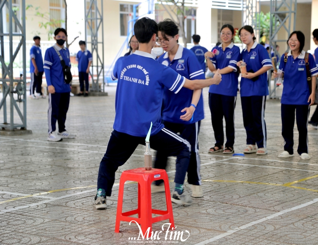 Đến buổi chiều, học sinh khối 12 Trường THPT Thanh Đa tiếp tục tham gia trò chơi dân gian cướp cờ. Các "trận đấu" diễn ra hào hứng, sôi động, tạo không khí vui tươi, giúp các bạn học sinh giải tỏa những căng thẳng sau một năm nỗ lực học tập.