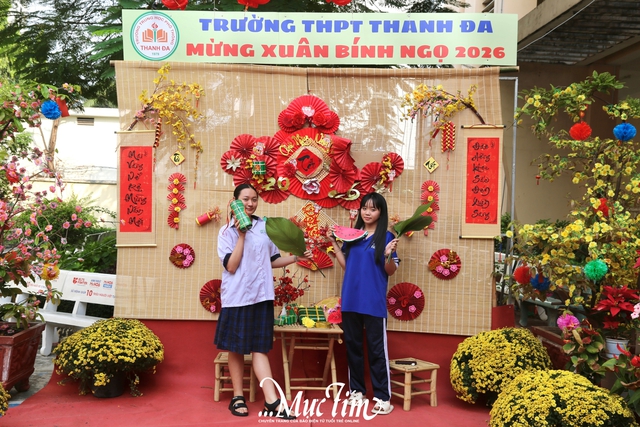 Góc check-in tết của Trường THPT Thanh Đa được các teen yêu thích - Ảnh: HOÀNG VY