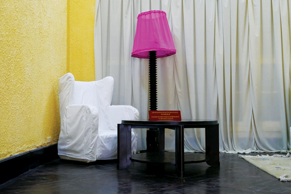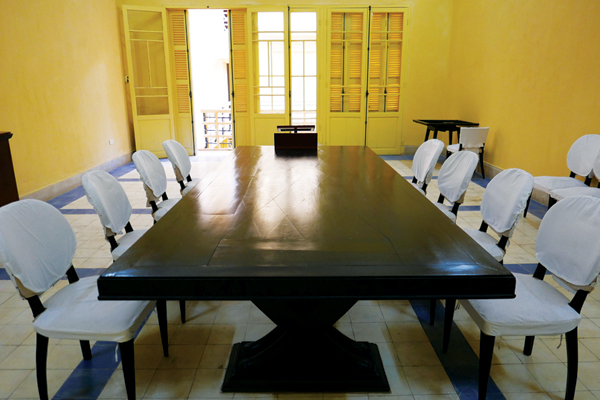 Còn đây là bàn làm việc của Bác khi tiếp các chú lãnh đạo cao cấp của Thường vụ Trung ương Đảng và Ủy ban Dân tộc giải phóng.