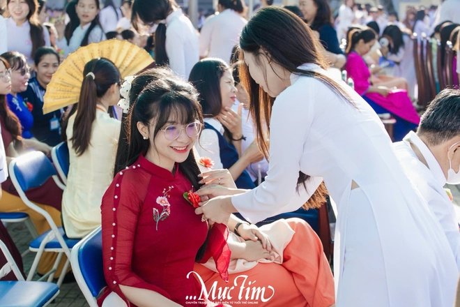 Khoảnh khắc tri ân khiến không khí buổi lễ thêm phần lắng đọng - Ảnh: VƯƠNG