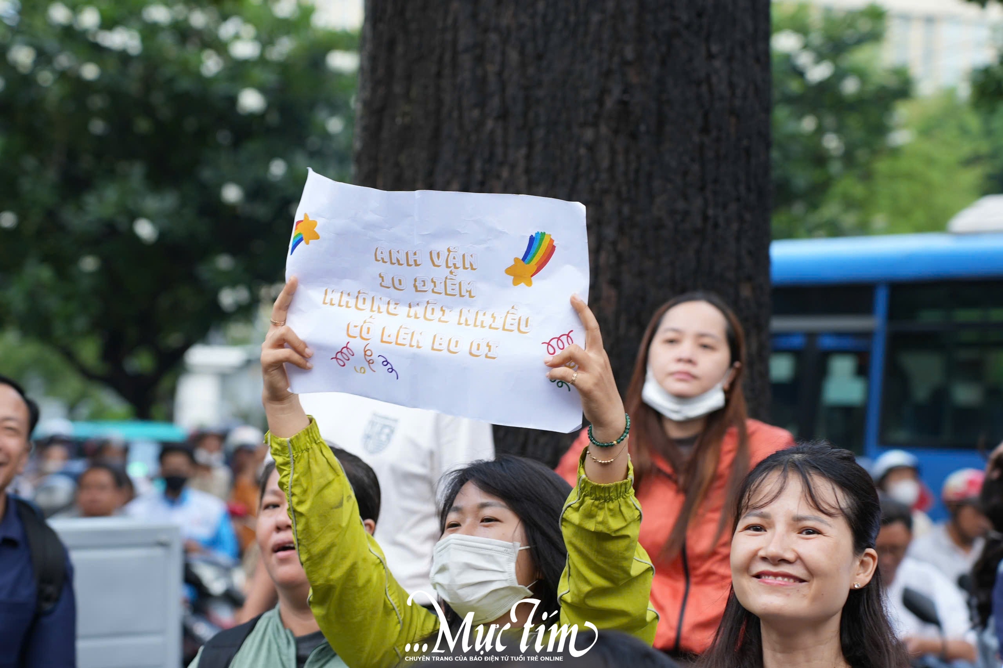 Lời động viên dễ thương dành cho các thí sinh tại điểm thi Trường THPT Hùng Vương (quận 5) - Ảnh: VŨ
