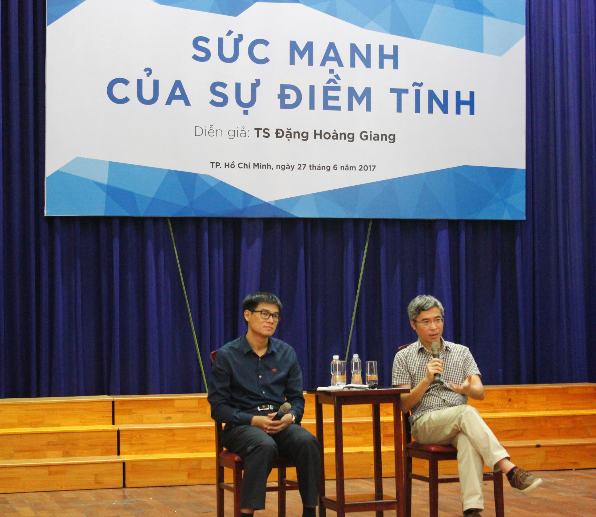 Tiến sĩ Đặng Hoàng Giang được các bạn biết đến thông qua vai trò tác giả của hai cuốn sách "Bức xúc không làm ta vô can" và "Thiện, ác và smartphone" có lượng phát hành cao trên thị trường sách hiện nay. Chính vì thế mà ngay khi mở đơn đăng kí tham gia, có rất nhiều các bạn sinh viên, giảng viên của trường và thậm chí là các bạn học sinh THPT, các anh chị đã đi làm nhanh chóng "xí" vé. Và trong buổi giao lưu, mặc dù đã đến sớm hơn 20 phút nhưng phóng viên nhận thấy hội trường đã kín chỗ ngồi, chứng tỏ đề tài "Sức mạnh của sự điềm tĩnh" thu hút sự quan tâm của rất nhiều bạn.