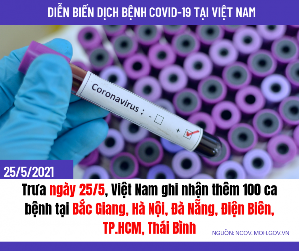 Đây là các ca được ghi nhận từ 6 giờ đến 12 giờ ngày 25/5. Tất cả đều là ca bệnh trong nước.
