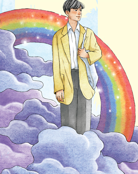 “Cuộc sống của chúng ta cũng thế, luôn đa dạng và đầy màu sắc. Thế nên, tớ mong cậu cũng đừng buồn nhiều nữa, mọi chuyện rồi cũng sẽ ổn thôi mà. Mưa nào rồi cũng sẽ tạnh, nắng có gắt gỏng đến mấy rồi cũng sẽ dịu đi và khi hai thứ đó cùng hòa quyện vào nhau thì lúc này cầu vồng sẽ xuất hiện. Và với tớ cầu vồng chính là thứ tượng trưng cho hạnh phúc”.