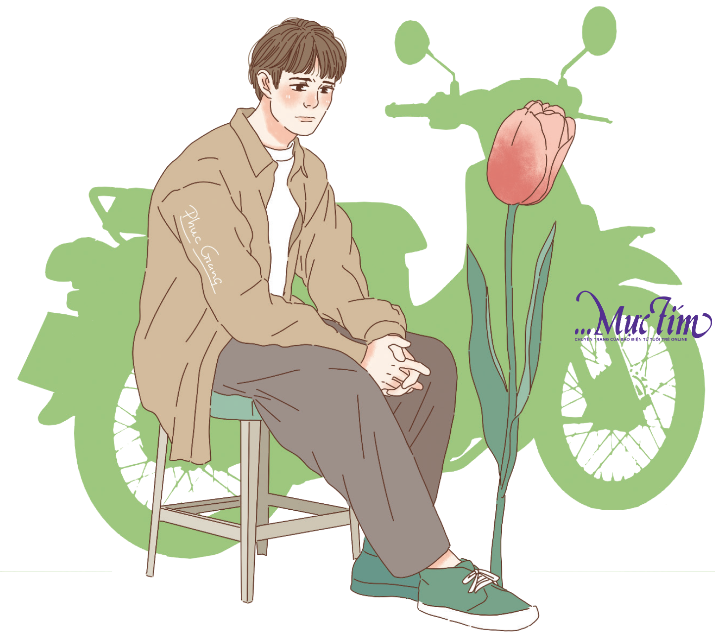 Hùng đáp gọn lỏn, tay rút ví trả tiền cho cả hai ly. Ngọc đứng bên cạnh cười toe toét, quen quá rồi nên chẳng thèm giành trả tiền nữa. Hai đứa bước ra chỗ dựng xe. Chiếc Dream Tàu cũ kỹ của Hùng nằm lọt thỏm giữa đám xe tay ga bóng bẩy. Hùng đạp máy, tiếng pô xe nổ phạch phạch nghe chói tai nhưng thân thuộc.