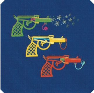 Vừa là kẹo, vừa là đồ chơi. Sau khi “chén” xong các viên kẹo màu sắc, chiếc mặt nạ “cool ngầu” tiếp tục được anh chị 9X tận dụng. Thường là hóa thân thành siêu nhân, anh hùng chiến đấu với quái vật (có khi là cuộc chiến giữa các “siêu nhân” nữa). Để hóa thân thành siêu nhân, không thể thiếu vũ khí. Và súng nhựa với “động cơ” dây cao su là một trong những vũ khí được các “siêu nhân” 9X trọng dụng. “Mỗi chiều đi học về đám nhóc tụi mình hay chia làm 2 phe để chơi truy đuổi bằng súng nhựa mua ở tạp hóa trước cổng trường, đứa súng đỏ, đứa súng xanh, súng vàng... Cầm trên tay và hóa thân thành cảnh sát đi bắt cướp”, anh Sịn chia sẻ về kỉ niệm.
