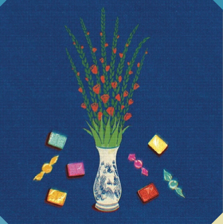 Những ngày giỗ, Tết, lễ quan trọng, bên cạnh bát hương nghi ngút khói là bình hoa, một ít bánh kẹo dâng tổ tiên. Trẻ em bao giờ cũng thích kẹo bánh, nên đây là hình ảnh ấn tượng đối với tuổi thơ của nhiều người. Riêng nhà anh Sịn thường cắm hoa huệ, một ít bánh in và kẹo là loại được bọc giấy kính đầy màu sắc. “Mình còn hay lấy vỏ (kẹo) giấy kính để lên mắt để nhìn mọi thứ xung quanh bằng màu đỏ, vàng, xanh... một cách thích thú”, anh Sịn hí hửng kể.