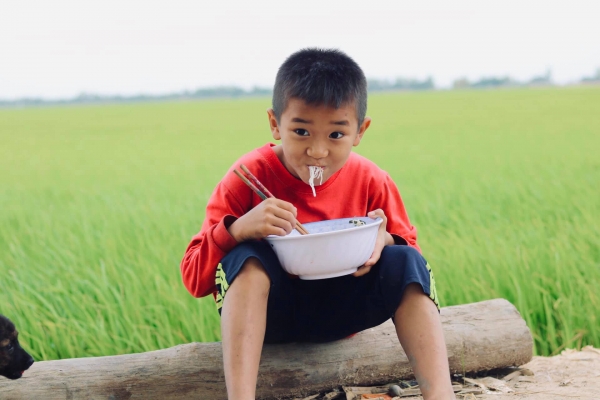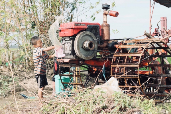 Nét mộc mạc của người nông dân cùng sinh hoạt đồng ruộng vui vẻ của đứa con nhà nông. Ảnh Dương Tấn Phúc